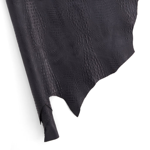 These cowhide sides are drum-dyed then embossed to imitate a crocodile pattern. The leather is then finished with oils, waxes and a metallic foil. ...