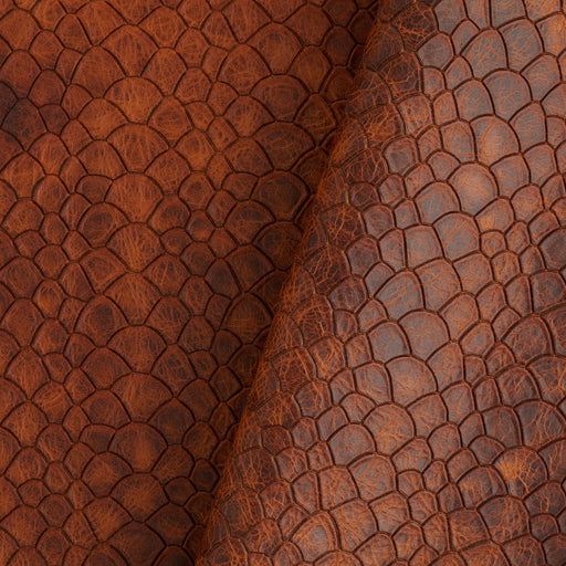 These cowhide sides are drum-dyed then embossed to mimic a scale pattern. The leather is then finished with oils and waxes. This soft leather is ma...