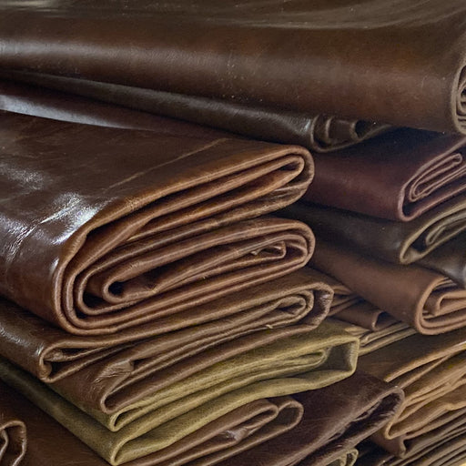 These US hides are drum dyed in Mexico and have a light pull-up effect and a soft hand. This leather can be used for shoe uppers, bags, bracelets, ...