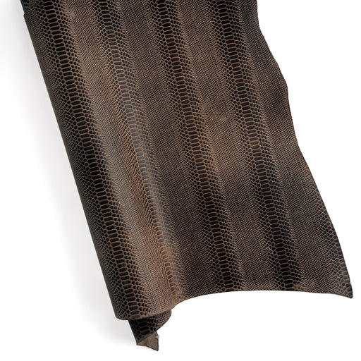Nuestros nuevos lados curtidos al vegetal con acabado de estampado de serpiente son una excelente opción para bolsos, carteras, incrustaciones y m...