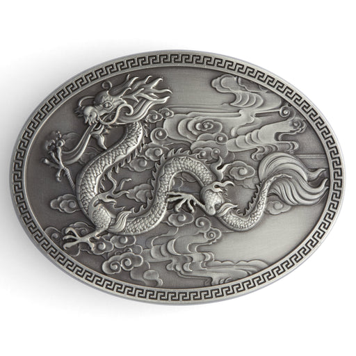 The Oval Dragon Trophy Buckle features a sinuous, long-bodied dragon in full stride—its flowing mane, outstretched claws, and serpentine movement c...