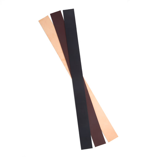 Specifications Length: 42 in. (1.06 m) Width: 1.5 in. (38 mm) Weight/Thickness: 8 to 9 oz. (3.2 to 3.6 mm) Tannage: Veg-Tan Color: Natural