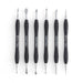 Conçu pour le confort, un meilleur contrôle et des résultats formidables. La cuillère ronde fine/petite, la cuillère ronde moyenne/grande et la cuillère pointue moyenne/grande sont utilisées pour sculpter la figure et lisser les marques de biseautage. La petite/grande boule est utilisée pour le gaufrage. Notre petite/grande contre-dépouille est idéale pour le biseautage et les contours. Le point/stylet est utilisé pour tous vos besoins de transfert.